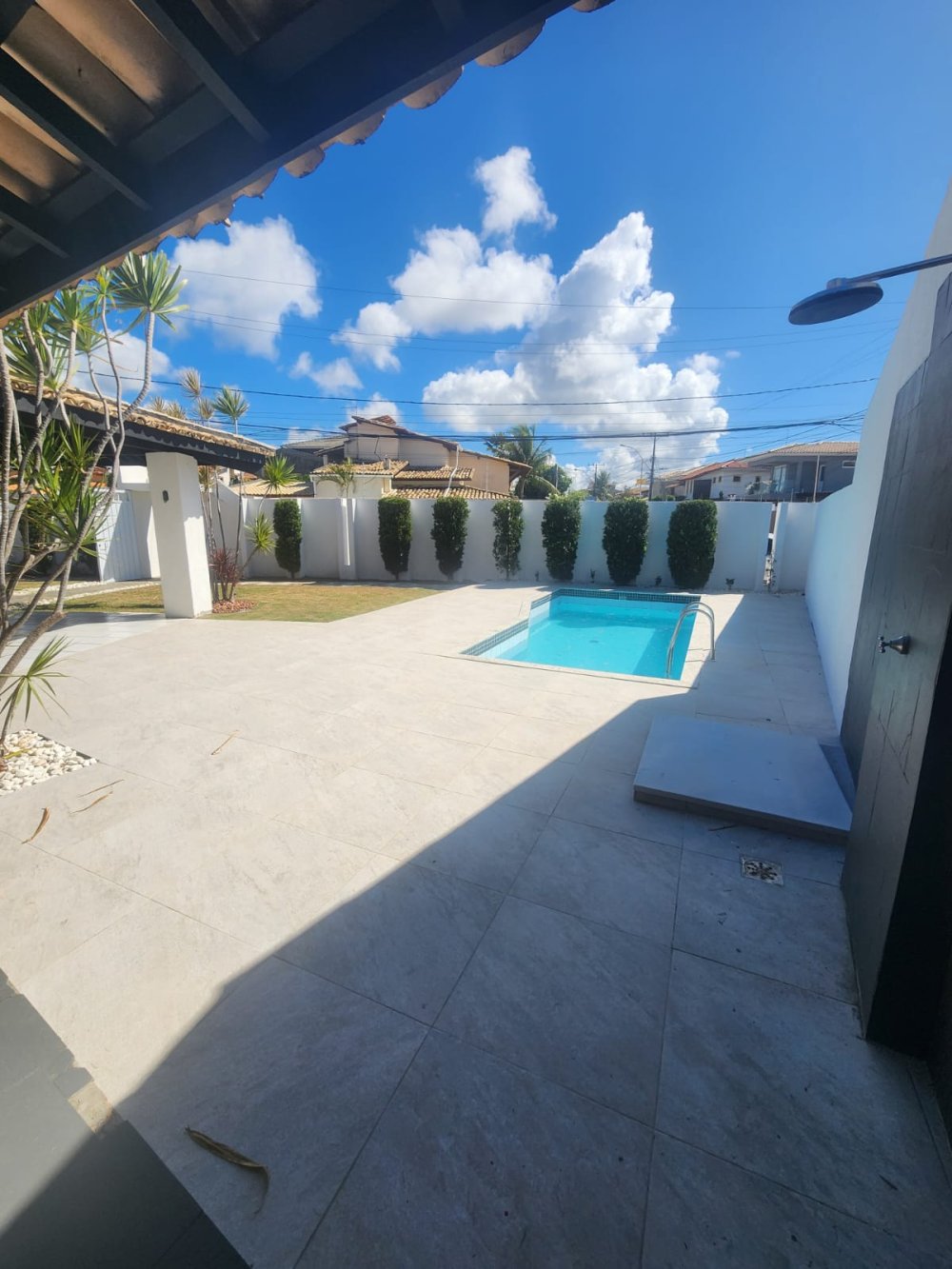 Locação casa solta em Vilas do Atlântico, 3/4, sendo 2 suítes andar superior, 1 quarto e banheiro social no terreo, terreno de 700m² com arvores frutiferas, espaço gourmet e piscina.
