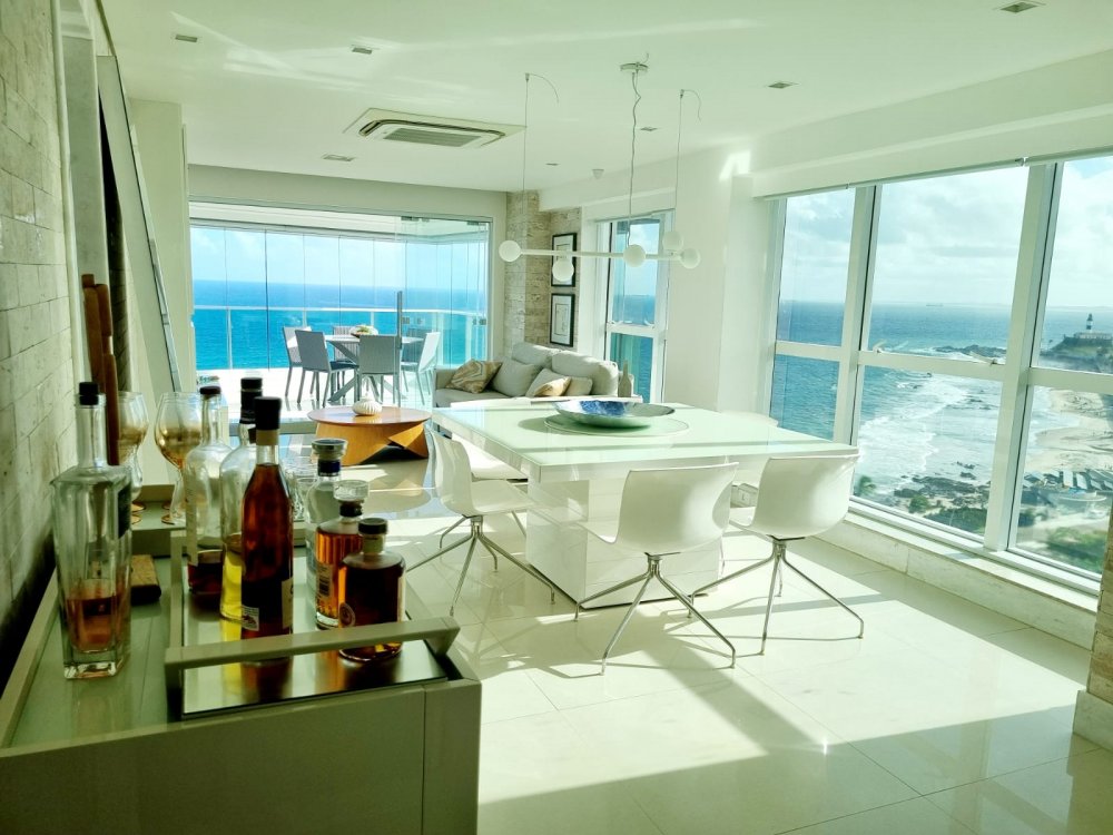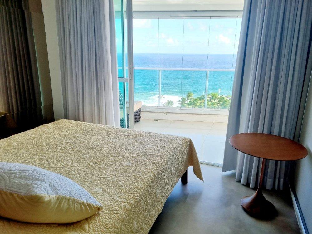 Apartamento é de alto padrão, localizado na Barra com vista mar, apenas 1 apartamento por andar, completamente mobiliado.