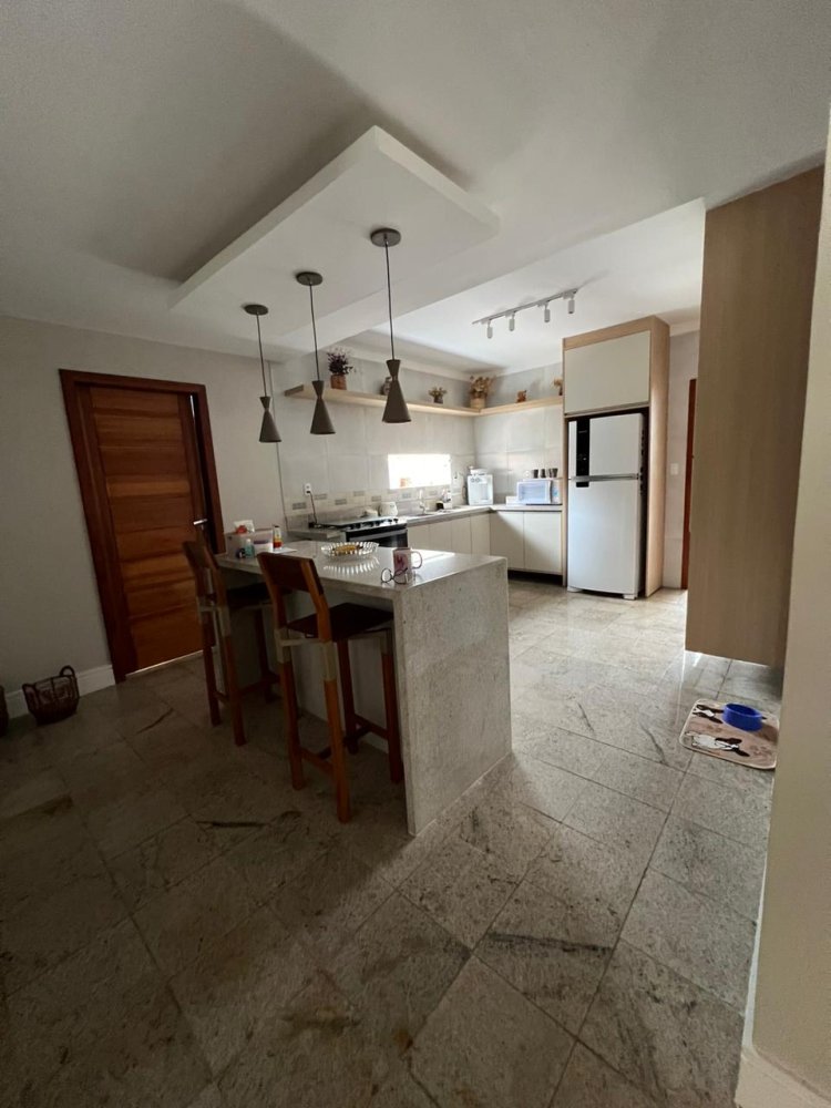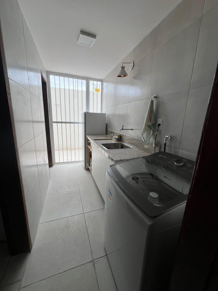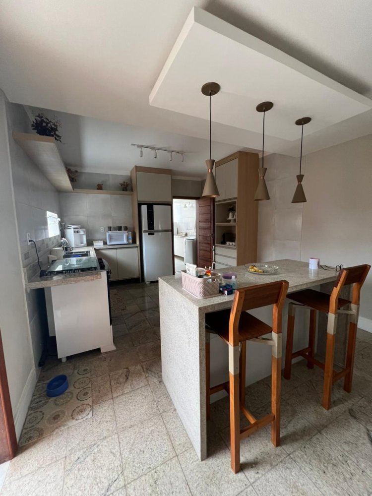 - Cozinha com armários e balcão americano para 04 lugares; - Área de serviço acoplada à cozinha, com estrutura de pia com balcão de pedra e armários;