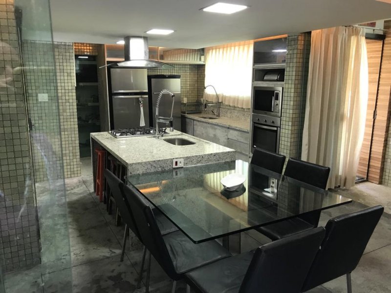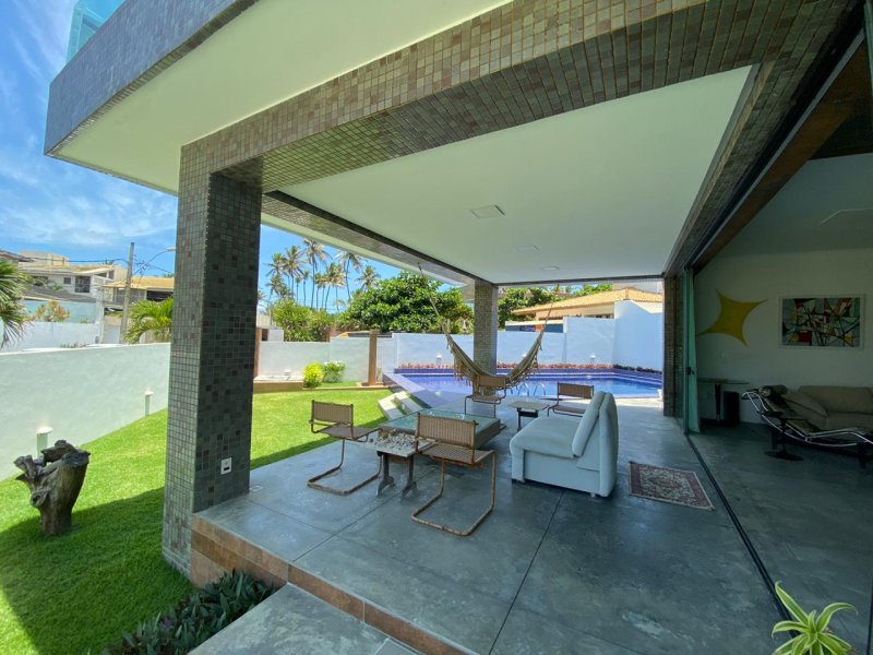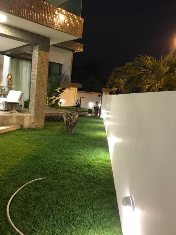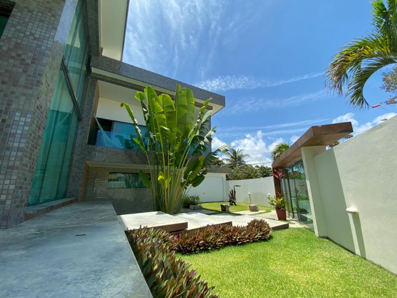 Mobiliada e com armários planejados em todos os ambientes, toda em vidro temperado verde, estudo eólico de vento, totalmente arejada, iluminação da casa toda em led, sanca na sala, cozinha e sala de TV/Som, mesmo cabeamento usado em plataformas de petróleo, poço artesiano, local para instalação de elevador dando acesso ao térreo, primeiro e segundo pavimento, aquecimento solar em todas as torneiras das cozinhas e chuveiros, central de gás em todas as cozinhas, portões da entrada social em aço inoxidável com vidro temperado verde de 12 mm com puxador de aço inoxidável de 2m, portão de saída para o mar em aço inoxidável com vidro temperado verde de 12 mm com puxador de aço inoxidável de 2m