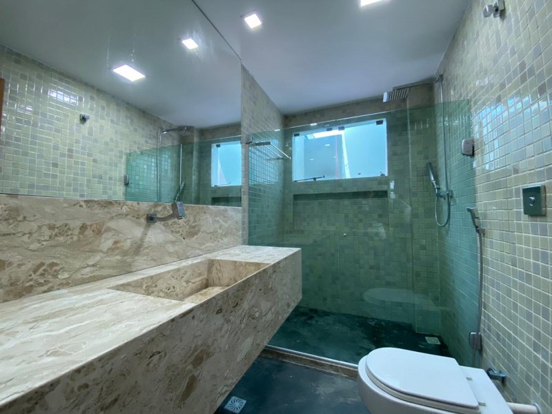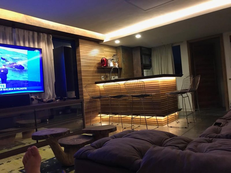 PRIMEIRO PAVIMENTO: Segunda suíte com closet composto de armários planejados com espelho, sapateira, painel de TV, cômoda, ventilador de teto, ponto de ar-condicionado, ponto de internet, varanda, cortina com blackout, banheiro com pia esculpida, box de vidro verde, porta toalheiro e chuveiro em inox, ducha higiênica. Terceira suíte completa de armários com espelho, painel de TV, cômoda, ventilador de teto, ponto de ar-condicionado, ponto de internet, varanda, cortina com blackout, banheiro com pia esculpida, box de vidro verde, porta toalheiro e chuveiro em inox, ducha higiênica. Quarta suíte completa de armários com espelho, bancada para estudo, painel de TV, cômoda, ventilador de teto, ponto de ar-condicionado, ponto de internet, cortina com blackout, banheiro com pia esculpida, box de vidro verde, porta toalheiro e chuveiro em inox, ducha higiênica. SEGUNDO PAVIMENTO: Sala de TV/Som de 40 m² com cozinha gourmet, fogão 2 bocas de vidro, armários, pia com torneira gourmet, porta vinhos, geladeira, micro-ondas, bar com iluminação de led. Varanda em frente a sala de TV/Som de 50 m² com vista para o mar e jardim lateral de 25m². Valor: R$ 3.400.000,00 (porteira fechada)
